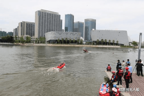 活动现场,市防溺水救援队就各项救援设备进行了水上实地精彩演练。欣思创无人船作为最终亮点产品亮相演练活动,并得到了参会者的一致认可。
