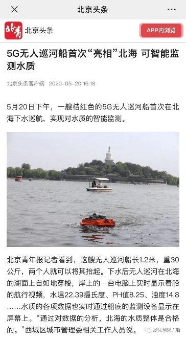 欣思创智能5G无人船 博得首都媒体广泛关注