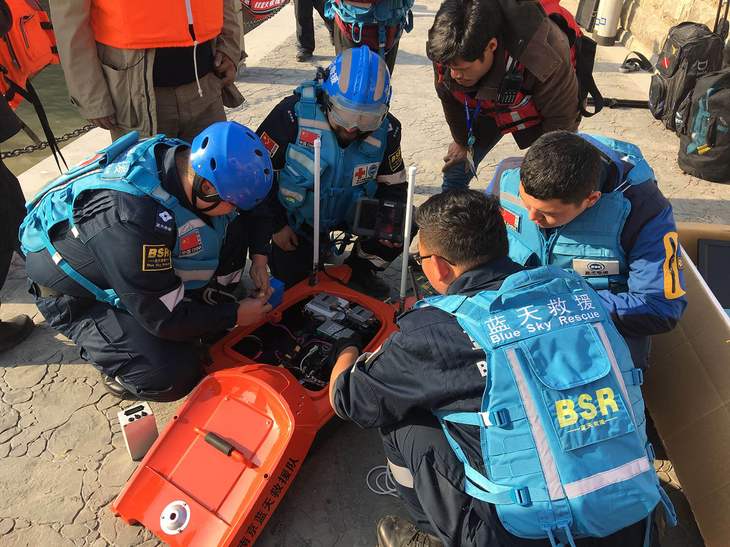 1. 2017年7月,欣思创科技首创将水下声纳设备应用于水下溺水探查,并将无人船无偿捐赠给南京蓝天救援队执行水下打捞工作。