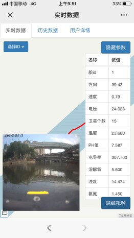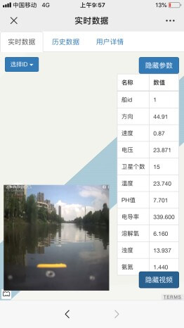 巡河过程中,用户可通过手机上网查询实时显示的水质及视频数据信息
